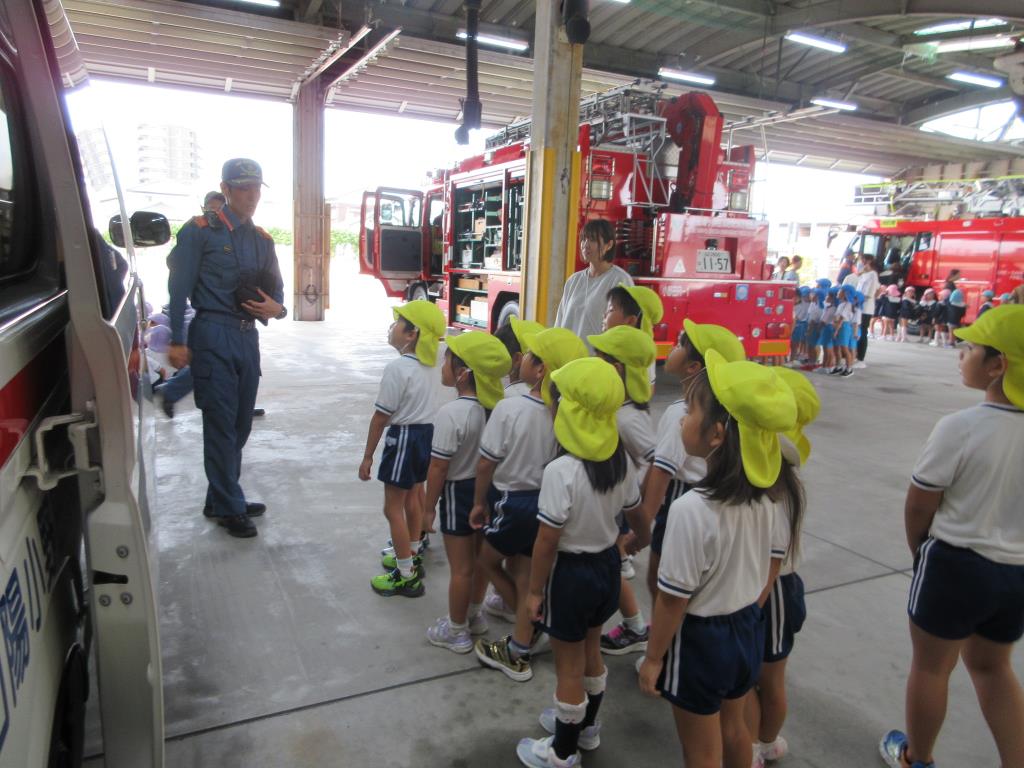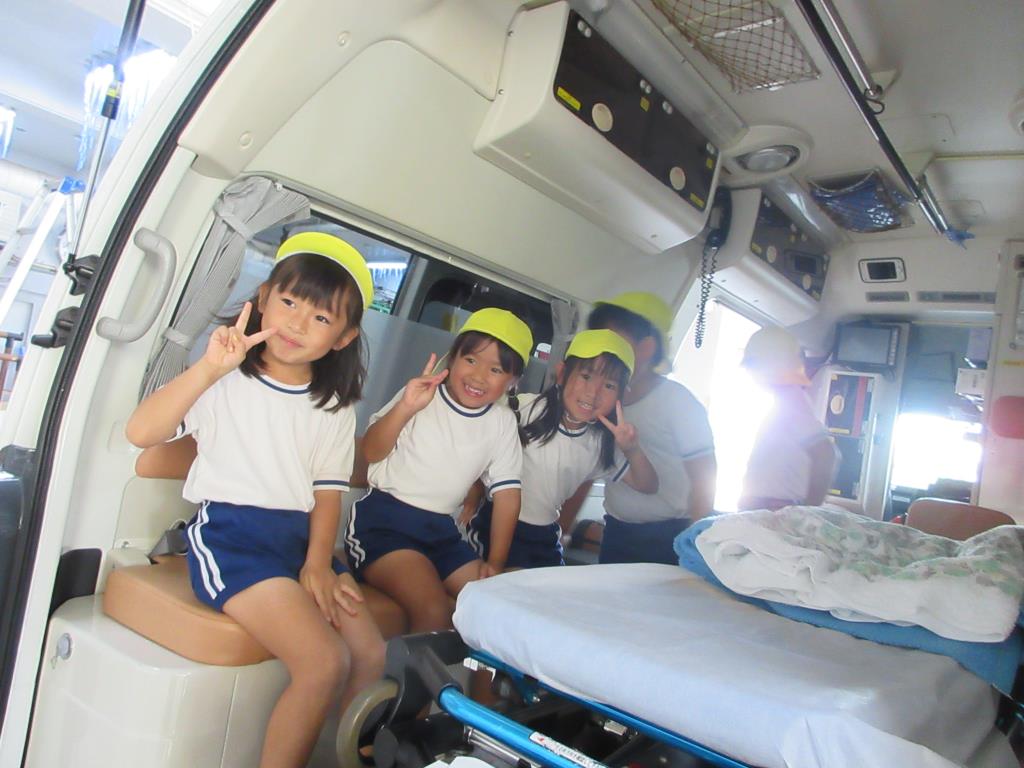 消防車・救急車の中を見せてもらい、実際に乗せていただきました。